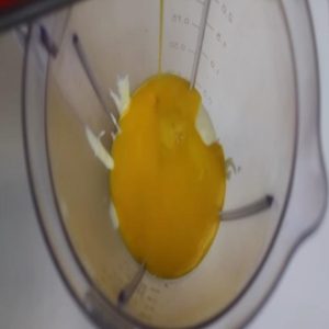 - Coloque dentro do liquidificador os ovos, o leite de coco e o açúcar demerara. Bata por alguns minutos até que se misture bem;