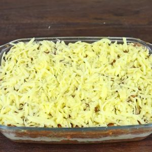 - Faça também uma camada de mussarela (a vontade) para assim colocar a outra camada de carne;