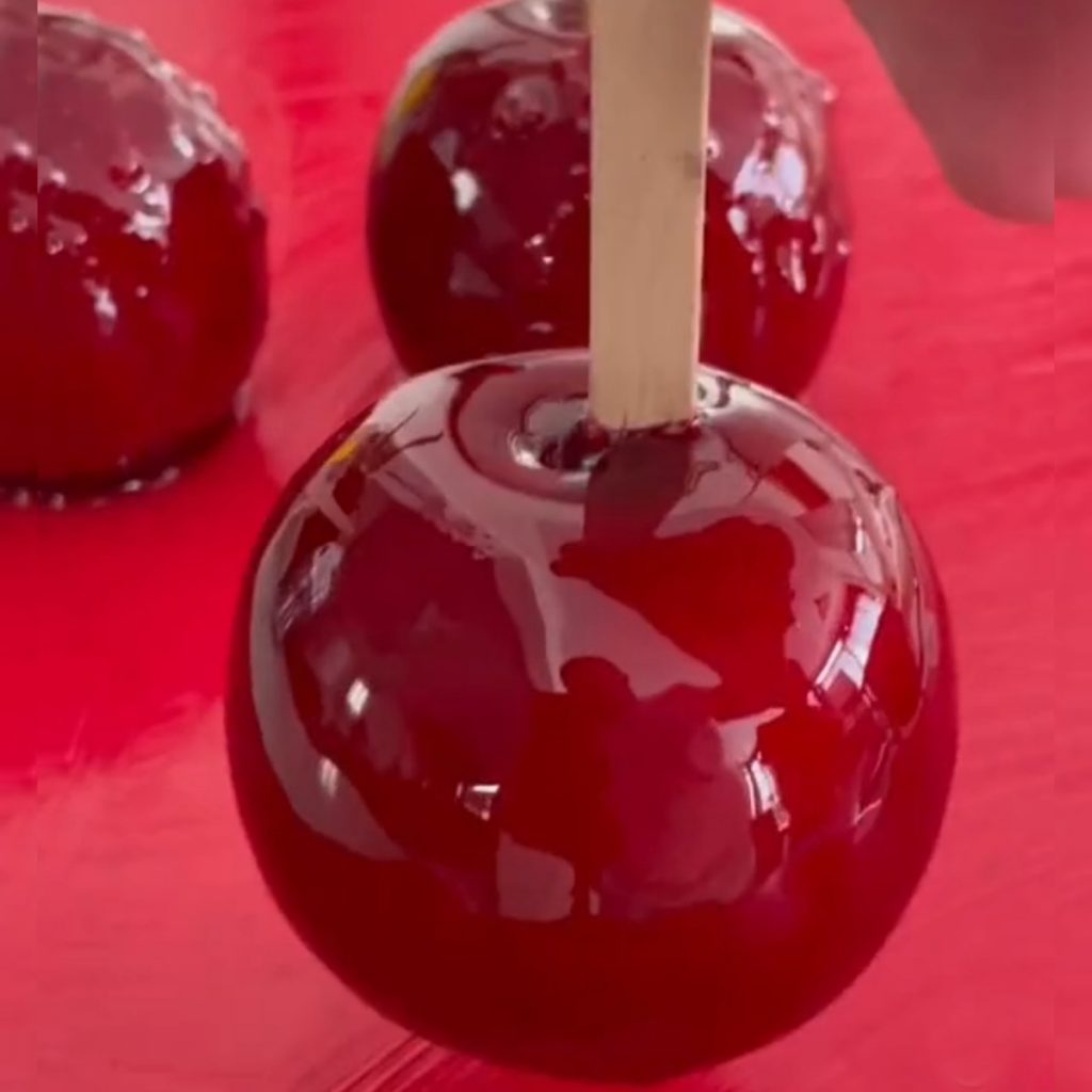 • Passe as maças na calda e em seguida, deixe secar. Está prontinha sua Maça do Amor.
