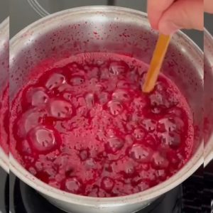 • Adicione o corante vermelho e misture com o fogo desligado.