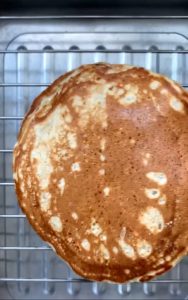 • Coloque uma concha da massa no centro da frigideira e deixe por mais ou menos 2 minutos até a lateral da panqueca começar a firmar e formarem bolhas na massa